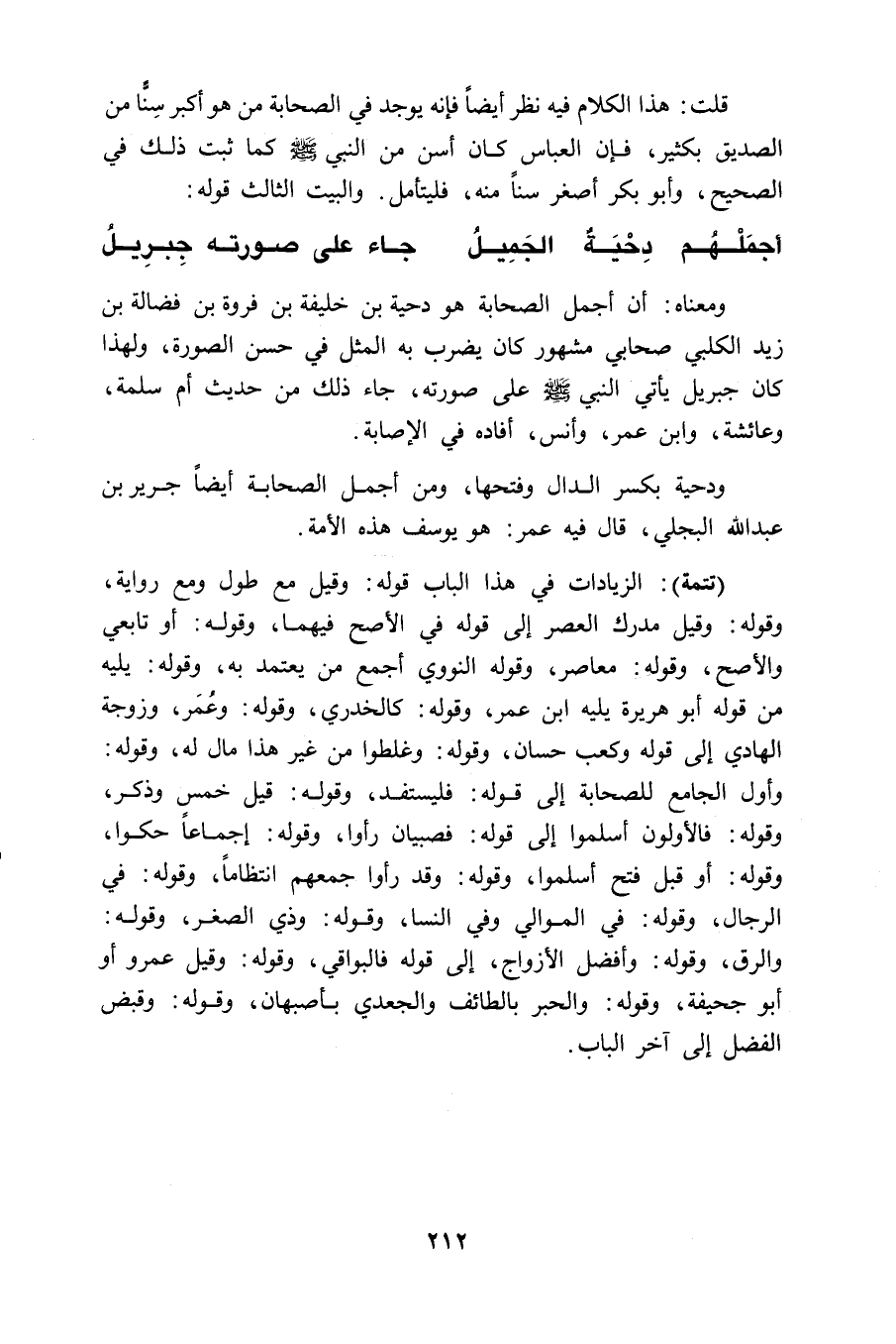 ودحية بكسر الدال وفتحها، ومن أجمل الصحابة أيضاً جرير بن عبد الله البجلي، قال فيه عمر: هو يوسف هذه الأمة.
