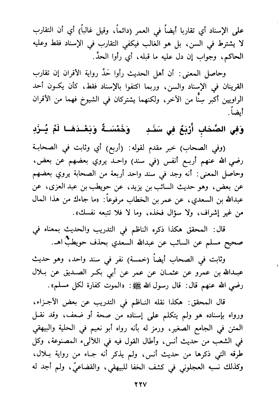 قال: المحقق هكذا ذكره الناظم في التدريب والحديث بمعناه في صحيح مسلم في السائب عن عبد الله السعدي بحذف حويطب اهـ.