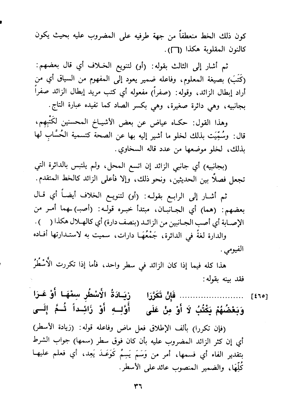 (فإن تكررا) بألف الإطلاق فعل ماض وفاعله قوله: (زيادة الأسطر) أي إن كثر الزائد المضروب عليه بأن كان فوق سطر (سمها) جواب الشرط بتقدير الفاء أي فسمها، أمر من وَسَمَ يَسِمُ كَوَعَدَ يَعِد، أي فعلم عليها كُلِّهَا، والضمير المنصوب عائد على الأسطر.