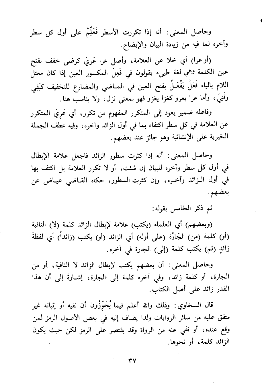 وحاصل المعنى: أن بعضهم يكتب لإبطال الزائد لا النافية، أو من الجارة، أو كلمة زائد، وفي آخره كلمة إلى الجارة، إشارة إلى أن هذا القدر زائد على أصل الكتاب.