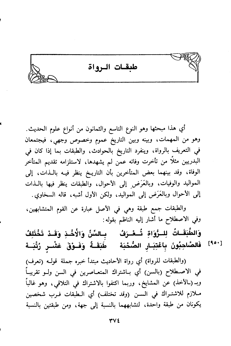والطبقات جمع طبقة وهي في الأصل عبارة عن القوم المتشابهين، وفي الاصطلاح ما أشار إليه الناظم بقوله: