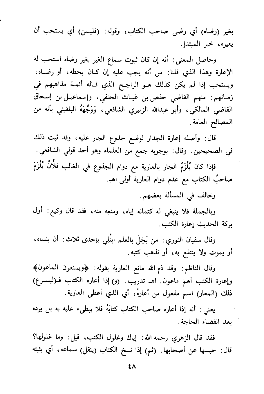 وقال الناظم: وقد ذم الله مانع العارية بقوله: (وَيَمْنَعُونَ الْمَاعُونَ). وإعارة الكتب أهم ماعون. اهـ تدريب. (و) إذا أعاره الكتاب فـ (ليسرع) ذلك (المعار) اسم مفعول من أعارهُ، أي الذي أعطى العارية.