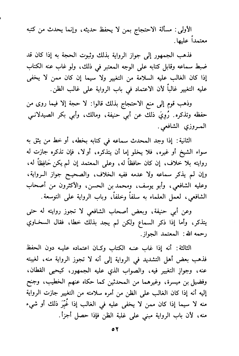الأولى: مسألة الاحتجاج بمن لا يحفظ حديثه، وإنما يحدث من كتبه معتمداً عليها.