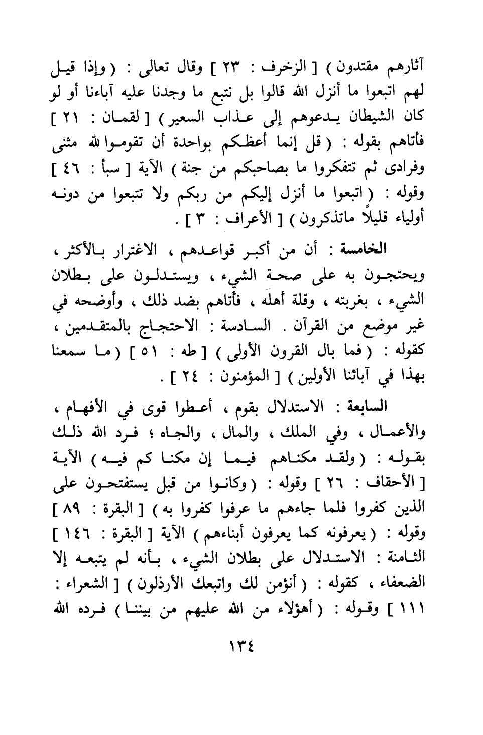 آثَارِهِمْ مُقْتَدُونَ} [سورة الزخرف آية: 23] ، وقال تعالى: {وَإِذَا قِيلَ لَهُمُ اتَّبِعُوا مَا أَنْزَلَ اللَّهُ قَالُوا بَلْ نَتَّبِعُ مَا وَجَدْنَا عَلَيْهِ آبَاءَنَا أَوَلَوْ كَانَ الشَّيْطَانُ يَدْعُوهُمْ إِلَى عَذَابِ السَّعِيرِ} [سورة لقمان آية: 21] ، فأتاهم بقوله: {قُلْ إِنَّمَا أَعِظُكُمْ بِوَاحِدَةٍ أَنْ تَقُومُوا لِلَّهِ مَثْنَى وَفُرَادَى ثُمَّ تَتَفَكَّرُوا مَا بِصَاحِبِكُمْ مِنْ جِنَّةٍ} الآية [سورة سبأ آية: 46] ، وقوله: {اتَّبِعُوا مَا أُنْزِلَ إِلَيْكُمْ مِنْ رَبِّكُمْ وَلا تَتَّبِعُوا مِنْ دُونِهِ أَوْلِيَاءَ قَلِيلاً مَا تَذَكَّرُونَ} [سورة الأعراف آية: 3] .