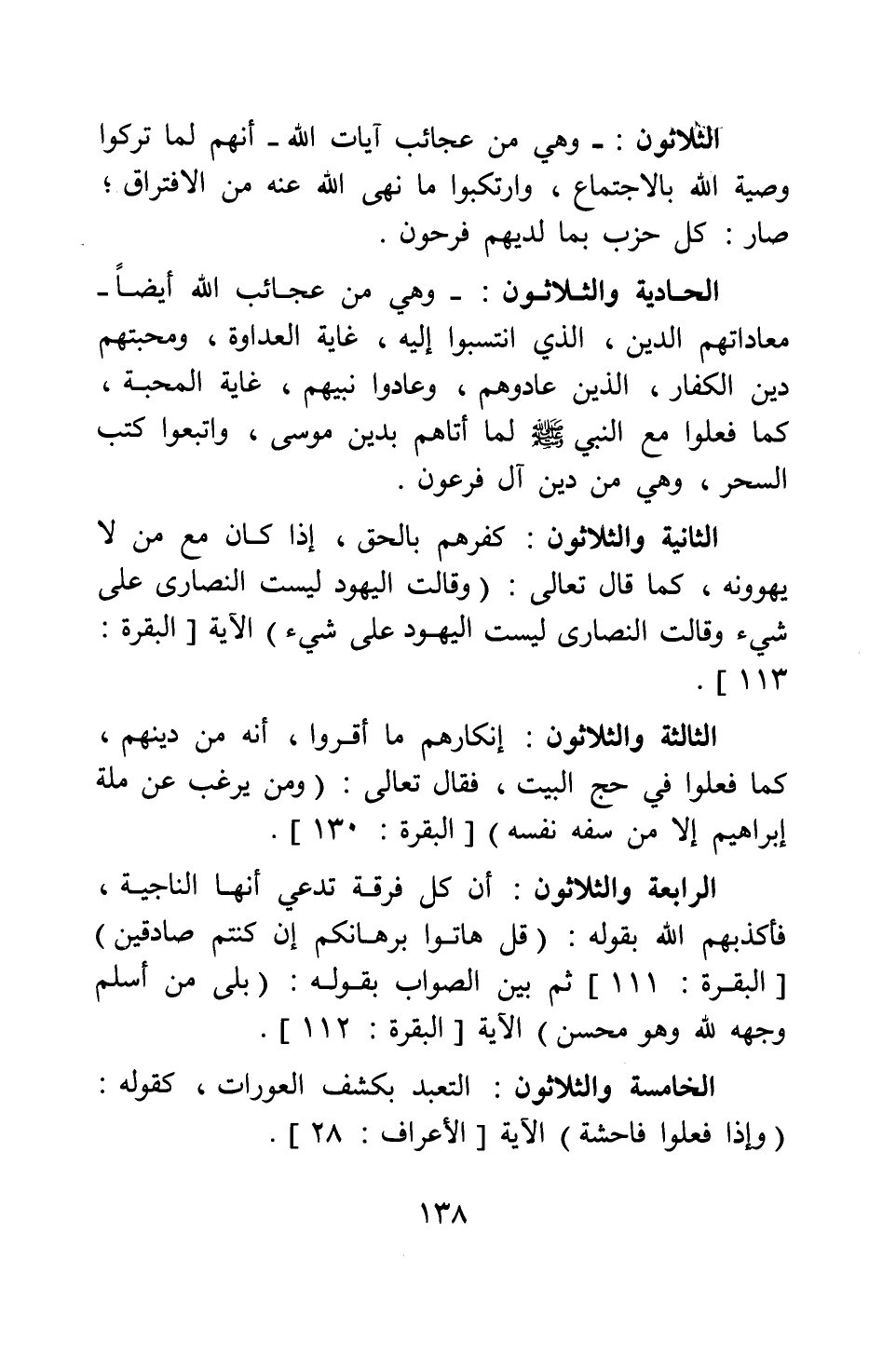 الثالثة والثلاثون: إنكارهم ما أقروا أنه من دينهم، كما فعلوا في حج البيت، فقال تعالى: {وَمَنْ يَرْغَبُ عَنْ مِلَّةِ إِبْرَاهِيمَ إِلَّا مَنْ سَفِهَ نَفْسَهُ} [سورة البقرة آية: 130] .