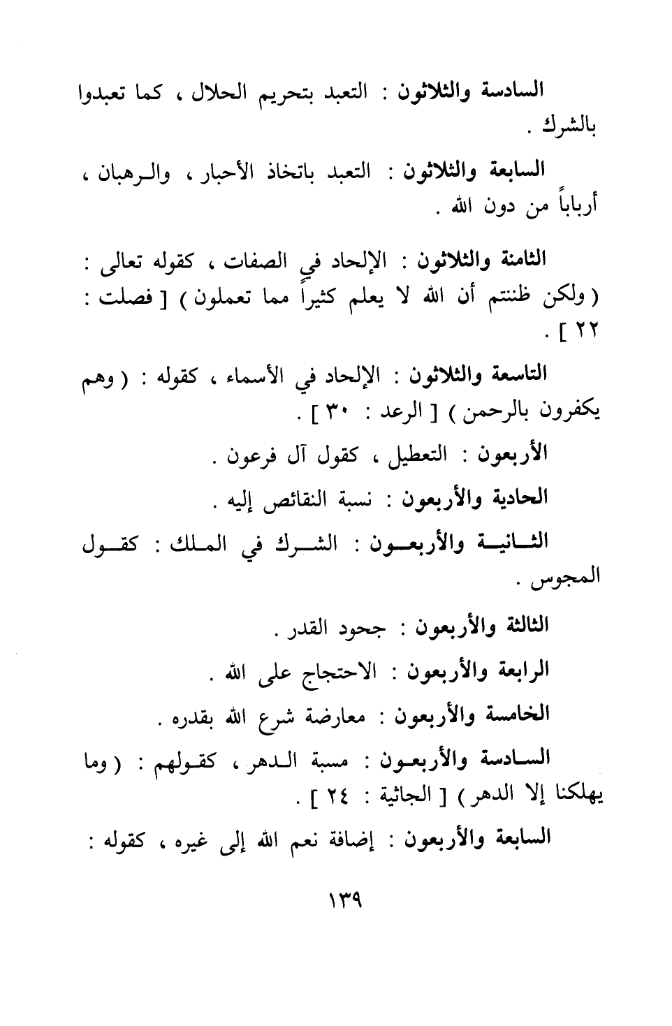 التاسعة والثلاثون: الإلحاد في الأسماء، كقوله: {وَهُمْ يَكْفُرُونَ بِالرَّحْمَنِ} [سورة الرعد آية: 30] .