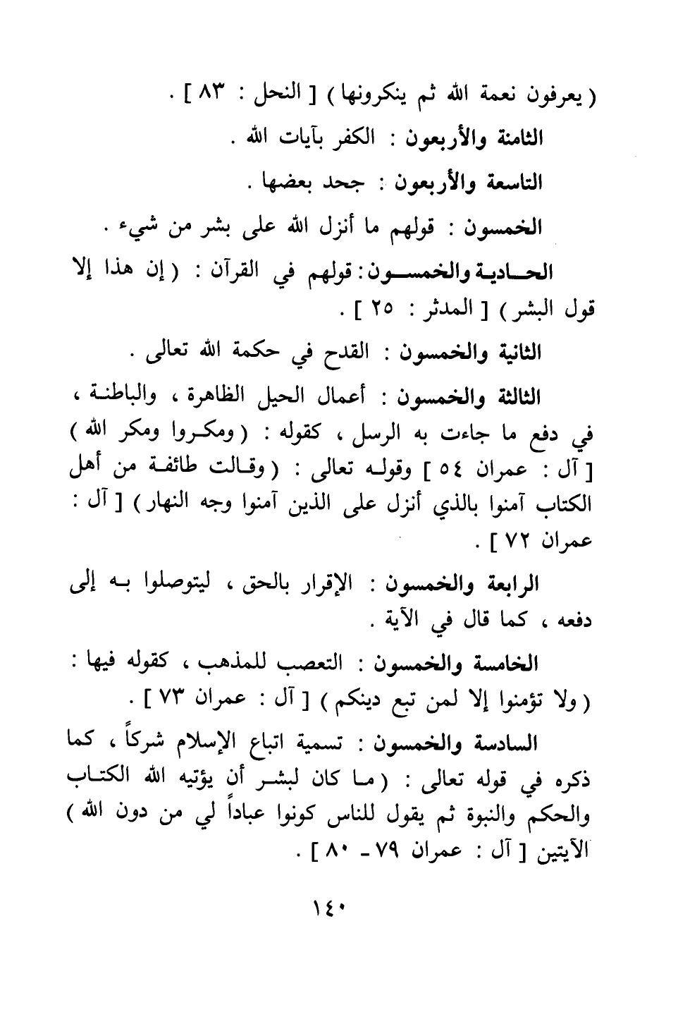 الخامسة والخمسون: التعصب للمذهب، كقوله فيها: {وَلا تُؤْمِنُوا إِلَّا لِمَنْ تَبِعَ دِينَكُمْ} [سورة آل عمران آية: 73] .