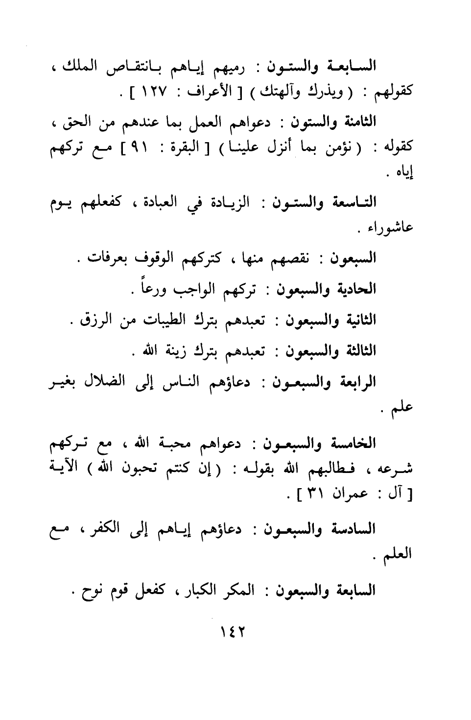 الخامسة والسبعون: دعواهم محبة الله، مع تركهم شرعه، فطالبهم الله بقوله: {إِنْ كُنْتُمْ تُحِبُّونَ اللَّهَ} الآية [سورة آل عمران آية: 31] .