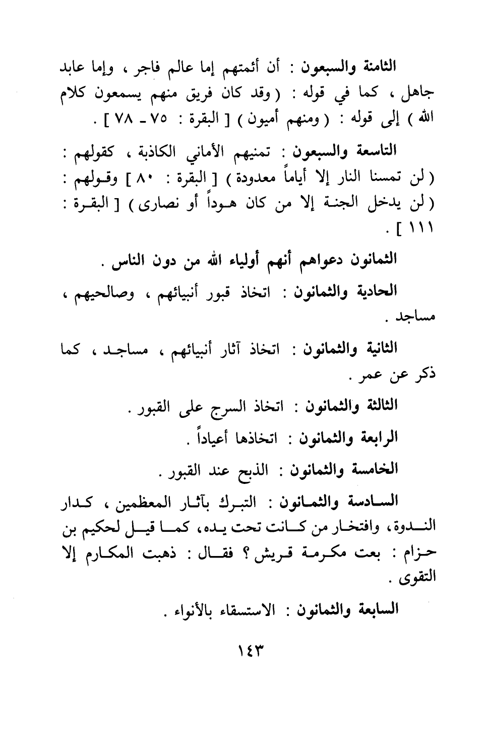 الثامنة والسبعون: أن أئمتهم إما عالم فاجر، وإما عابد جاهل، كما في قوله: {وَقَدْ كَانَ فَرِيقٌ مِنْهُمْ يَسْمَعُونَ كَلامَ اللَّهِ} [سورة البقرة آية: 75] إلى قوله: {وَمِنْهُمْ أُمِّيُّونَ} .