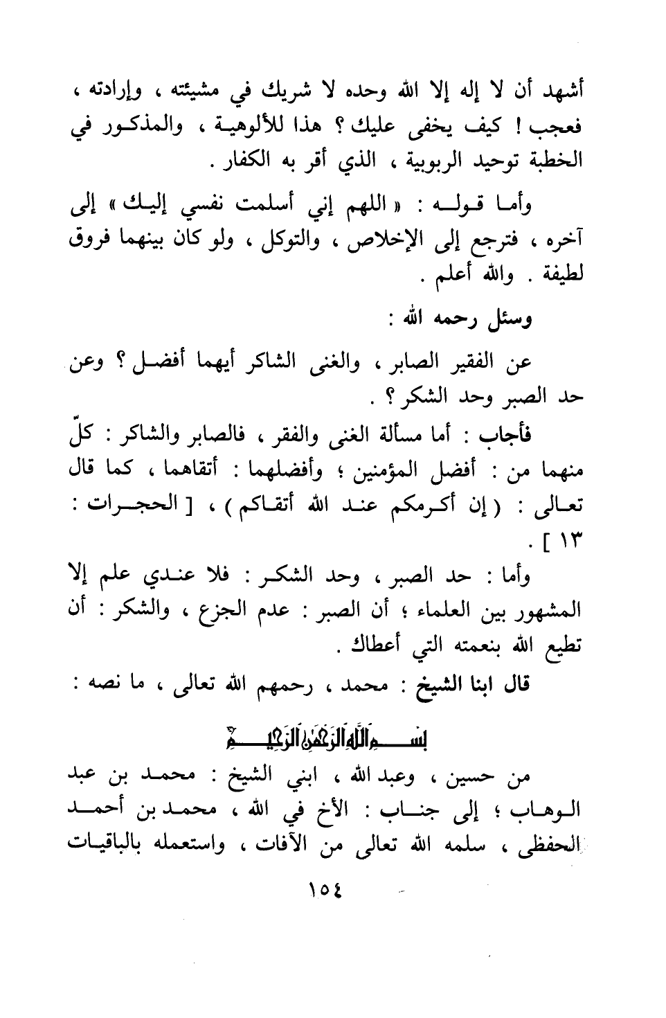 قال ابنا الشيخ محمد، رحمهم الله تعالى، ما نصه: