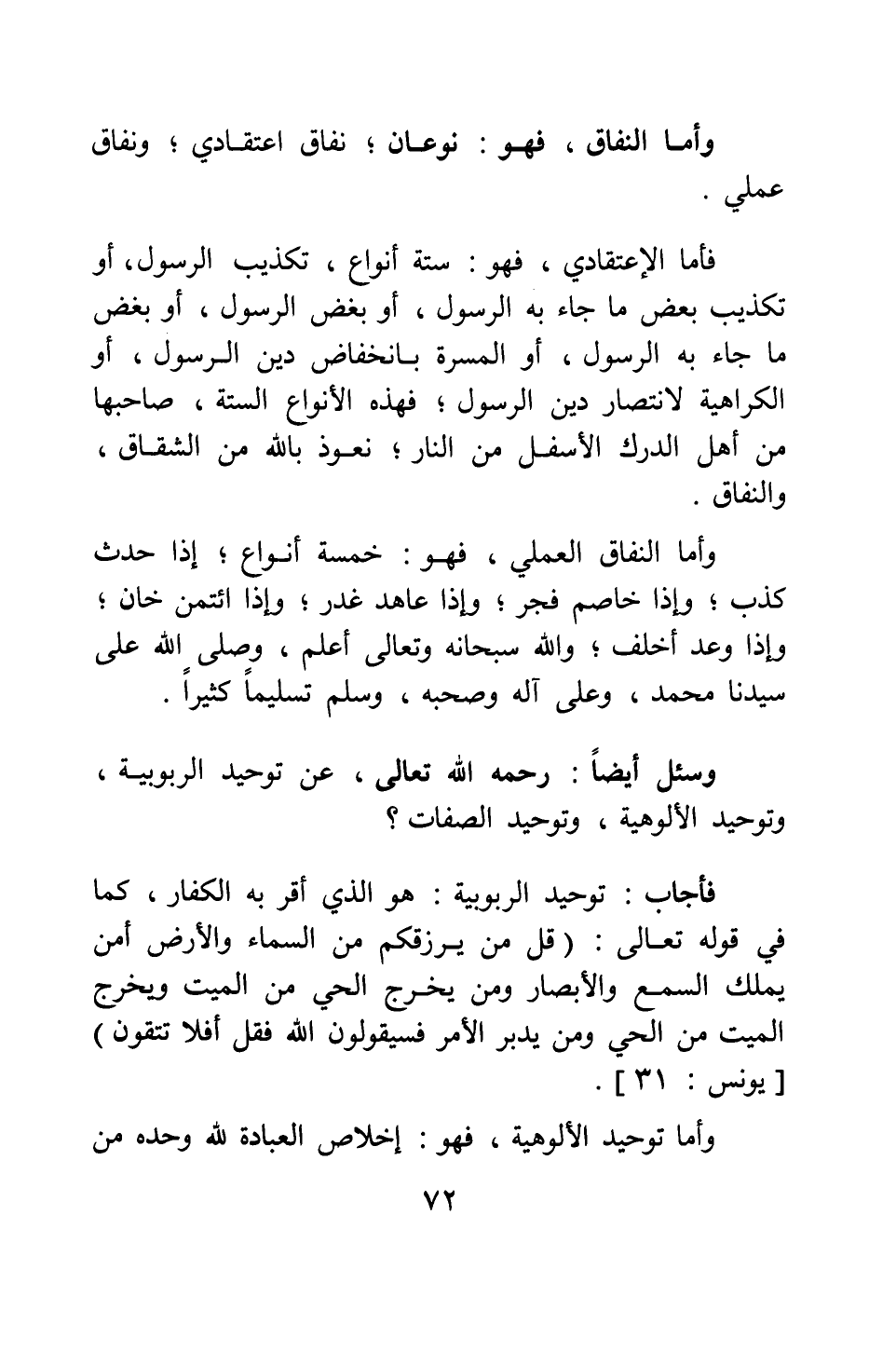 وسئل أيضا: رحمه الله تعالى، عن توحيد الربوبية، وتوحيد الألوهية، وتوحيد الصفات؟