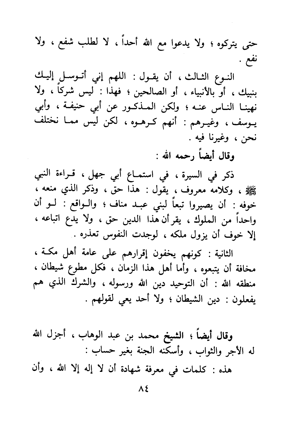 وقال أيضا، الشيخ محمد بن عبد الوهاب، أجزل الله له الأجر والثواب، وأسكنه الجنة بغير حساب: