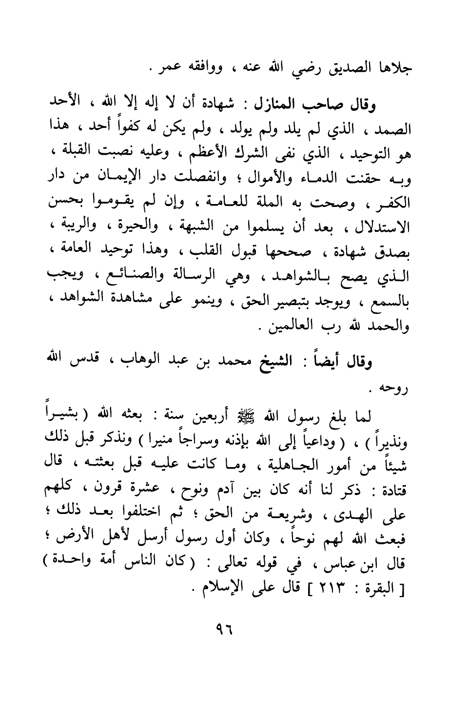 وقال أيضا: الشيخ محمد بن عبد الوهاب، قدس الله روحه.