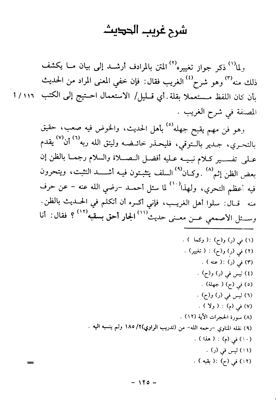 وَهُوَ فن مُهِمّ يقبح جَهله بِأَهْل الحَدِيث، والخوض فِيهِ صَعب، حقيق بِالتَّحَرِّي، جدير بالتوقي، فليحذر خائضه وليتق الله ربه أَن يقدم على تَفْسِير كَلَام نبيه عَلَيْهِ أفضل الصَّلَاة وَالسَّلَام رجما بِالظَّنِّ إِن بعض الظَّن إِثْم. وَكَانَ السّلف يتثبتون فِيهِ اشد التثبت، ويتحرون فِيهِ أعظم التَّحَرِّي، وَلِهَذَا لما سُئِلَ أَحْمد - رَضِي الله عَنهُ - عَن حرف مِنْهُ قَالَ: سلوا أهل الْغَرِيب، فَإِنِّي أكره أَن أَتكَلّم فِي الحَدِيث بِالظَّنِّ. وَسُئِلَ الْأَصْمَعِي عَن معنى حَدِيث الْجَار أَحَق بسقبه؟ فَقَالَ: أَنا
