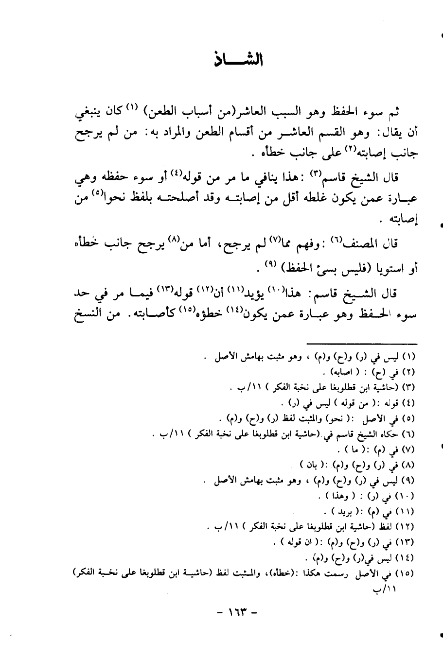 قَالَ الشَّيْخ قَاسم: هَذَا يُنَافِي مَا مر من قَوْله أَو سوء حفظه وَهِي عبارَة عَمَّن يكون غلطه أقل من إِصَابَته وَقد أصلحته بِلَفْظ نَحوا من إِصَابَته.
