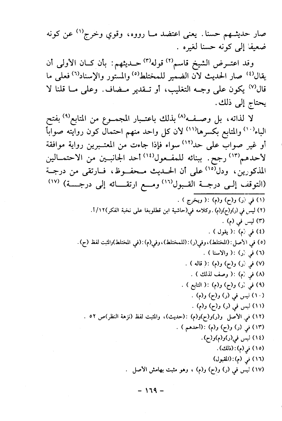 لَا لذاته، بل وَصفه بذلك بِاعْتِبَار الْمَجْمُوع من المتابع بِفَتْح الْبَاء والمتابع بِكَسْرِهَا لِأَن كل وَاحِد مِنْهُم احْتِمَال كَون رِوَايَته صَوَابا أَو غير صَوَاب على حد سَوَاء فَإِذا جَاءَت من المعتبرين رِوَايَة مُوَافقَة لأَحَدهم رجح. ببنائه للْمَفْعُول أحد الْجَانِبَيْنِ من الِاحْتِمَالَيْنِ الْمَذْكُورين، وَدلّ على أَن الحَدِيث مَحْفُوظ، فارتقى من دَرَجَة (التَّوَقُّف إِلَى دَرَجَة الْقبُول وَمَعَ ارتقائه إِلَى دَرَجَة)