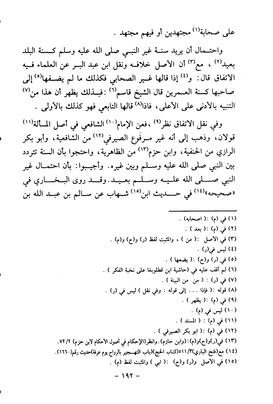 وَفِي نقل الِاتِّفَاق نظر، فَعَن الإِمَام الشَّافِعِي فِي أصل الْمَسْأَلَة قَولَانِ، وَذهب إِلَى أَنه غير مَرْفُوع الصَّيْرَفِي من الشَّافِعِيَّة، وَأَبُو بكر الرَّازِيّ من الْحَنَفِيَّة، وَابْن حزم من الظَّاهِرِيَّة، وَاحْتَجُّوا بِأَن السّنة تَتَرَدَّد بَين النَّبِي وَبَين غَيره. وأجيبوا: بِأَن احْتِمَال غير النَّبِي بعيد. وَقد روى البُخَارِيّ فِي " صَحِيحه " فِي حَدِيث ابْن شهَاب عَن سَالم بن عبد الله بن