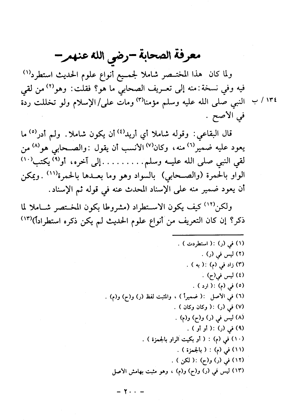 قَالَ البقاعي: وَقَوله شَامِلًا أَي أُرِيد أَن يكون شَامِلًا. وَلم أدر مَا يعود عَلَيْهِ ضمير مِنْهُ، وَكَانَ الْأَنْسَب أَن يَقُول: والصحابي هُوَ من لَقِي النَّبِي. . إِلَى آخِره، أَو يكْتب الْوَاو بالحمرة (والصحابي) بِالسَّوَادِ وَهُوَ وَمَا بعْدهَا بالحمرة. وَيُمكن أَن يعود ضمير مِنْهُ على الْإِسْنَاد الْمُحدث عَنهُ فِي قَوْله ثمَّ الْإِسْنَاد.