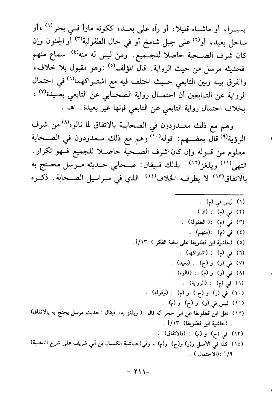 يَسِيرا، أَو مَا شاه قَلِيلا، أَو رَآهُ على بعد، كَكَوْنِهِ مارا فِي بَحر، أَو سَاحل بعيد، أَو على جبل شامخ أَو فِي حَال الطفولية أَو الْجُنُون وَإِن كَانَ شرف الصُّحْبَة حَاصِلا للْجَمِيع. وَمن لَيْسَ لَهُ مِنْهُ سَماع مِنْهُم فَحَدِيثه مُرْسل من حَيْثُ الرِّوَايَة. قَالَ الْمُؤلف: وَهُوَ مَقْبُول بِلَا خلاف، وَالْفرق بَينه وَبَين التَّابِعِيّ حَيْثُ اخْتلف فِيهِ مَعَ اشتراكهما فِي احْتِمَال الرِّوَايَة عَن التَّابِعين أَن احْتِمَال رِوَايَة الصَّحَابِيّ عَن التَّابِعِيّ بعيدَة، بِخِلَاف احْتِمَال رِوَايَة التَّابِعِيّ عَن التَّابِعِيّ فَإِنَّهَا غير بعيدَة. اه.