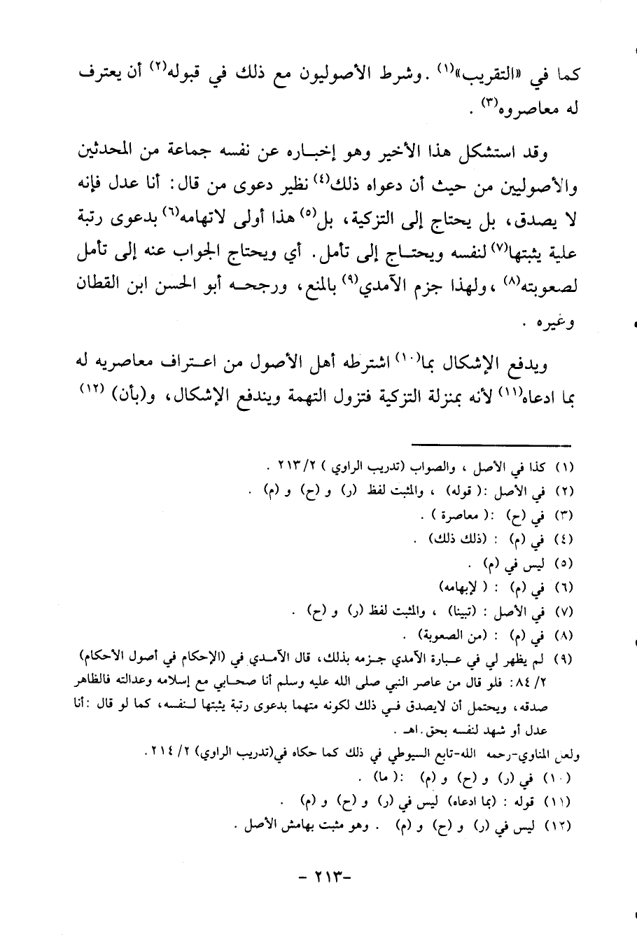 كَمَا فِي " التَّقْرِيب ". وَشرط الأصوليون مَعَ ذَلِك قي قبُوله أَن يعْتَرف لَهُ معاصروه.