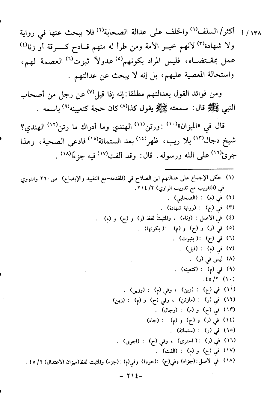 أَكثر / السّلف وَالْخلف على عَدَالَة الصَّحَابَة فَلَا يبْحَث عَنْهَا فِي رِوَايَة وَلَا شَهَادَة لأَنهم خير الْأمة وَمن طَرَأَ لَهُ مِنْهُم قَادِح كسرقة أَو زنا عمل بِمُقْتَضَاهُ، فَلَيْسَ المُرَاد بكونهم عُدُولًا ثُبُوت الْعِصْمَة لَهُم، واستحالة الْمعْصِيَة عَلَيْهِم، بل إِنَّه لَا يبْحَث عَن عدالتهم.