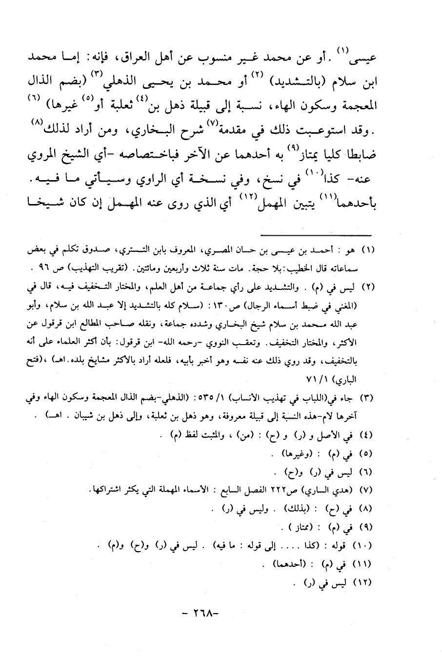 عِيسَى. أَو عَن مُحَمَّد غير مَنْسُوب عَن أهل الْعرَاق، فَإِنَّهُ: إِمَّا مُحَمَّد ابْن سَلام (بِالتَّشْدِيدِ) أَو مُحَمَّد بن يحيى الذهلي (بِضَم الذَّال الْمُعْجَمَة وَسُكُون الْهَاء، نِسْبَة إِلَى قَبيلَة ذهل بن ثَعْلَبَة أَو غَيرهَا) .