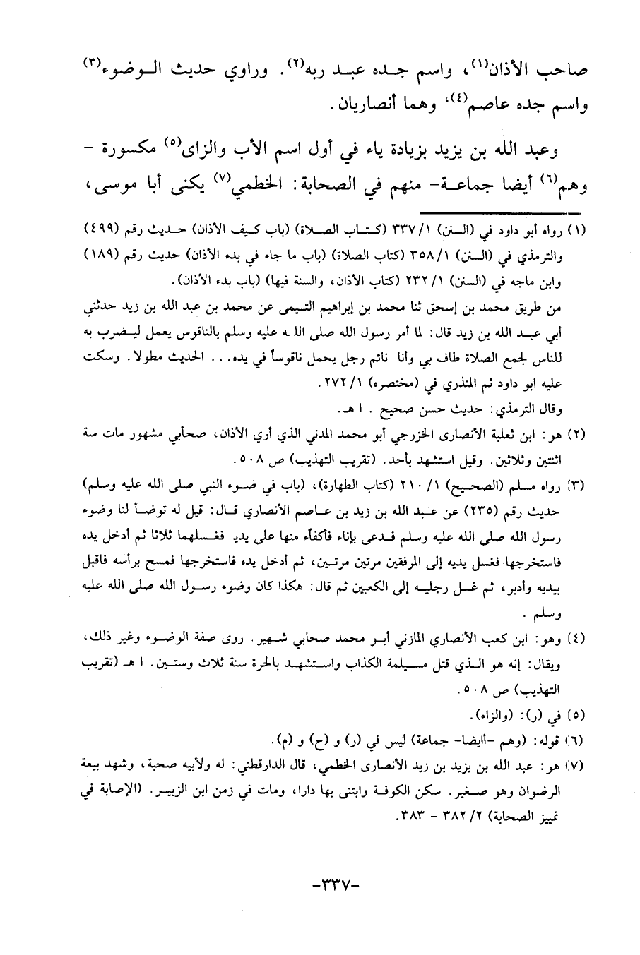 صَاحب الْأَذَان، وَاسم جده عبد ربه. وراوي حَدِيث الْوضُوء وَاسم جده عَاصِم، وهما أنصاريان.
