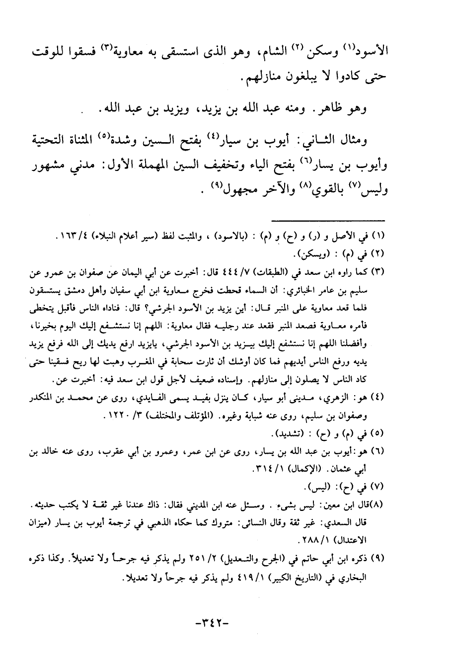 الْأسود وَسكن الشَّام، وَهُوَ الَّذِي استسقى بِهِ مُعَاوِيَة فسقوا للْوَقْت حَتَّى كَادُوا لَا يبلغون مَنَازِلهمْ.