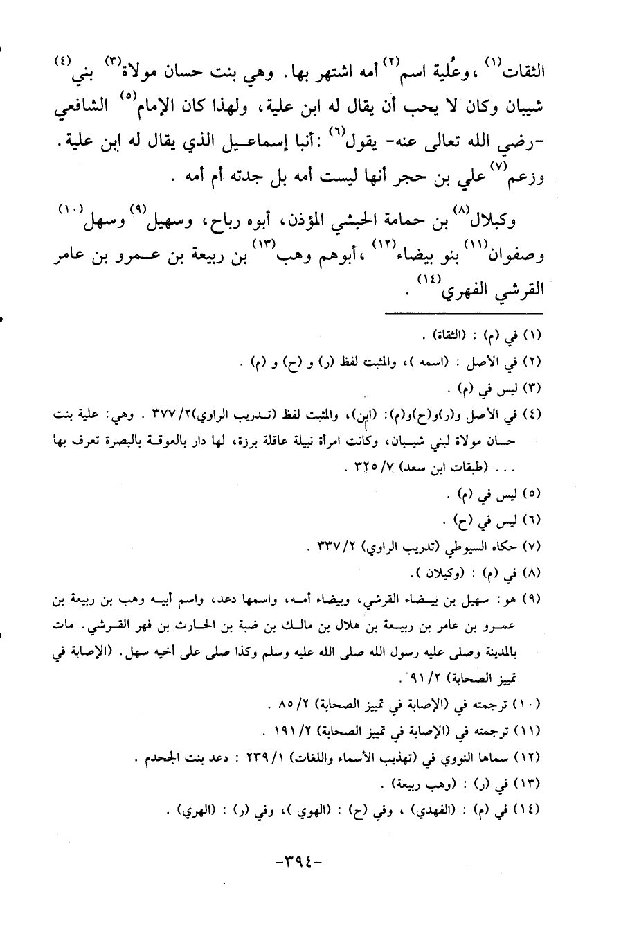الثِّقَات، وَعليَّة اسْم أمه اشْتهر بهَا. وَهِي بنت حسان مولاة بني شَيبَان وَكَانَ لَا يحب أَن يُقَال لَهُ ابْن علية، وَلِهَذَا كَانَ الإِمَام الشَّافِعِي - رَضِي الله تَعَالَى عَنهُ - يَقُول: أنبا إِسْمَاعِيل الَّذِي يُقَال لَهُ ابْن علية: وَزعم عَليّ بن حجر أَنَّهَا لَيست أمه بل جدته أم أمه.