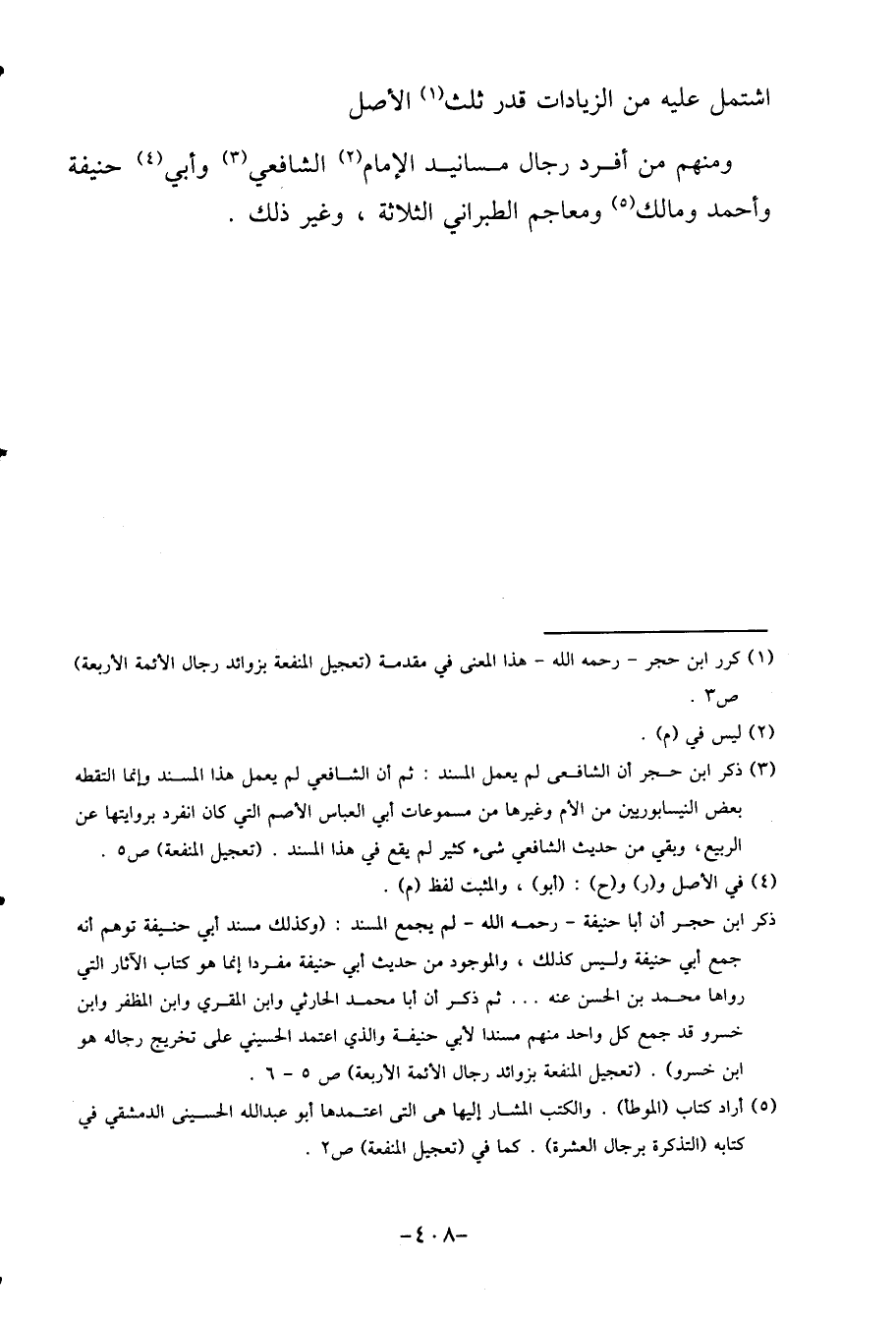 وَمِنْهُم من أفرد رجال مسانيد الإِمَام الشَّافِعِي وَأبي حنيفَة وَأحمد وَمَالك ومعاجم الطَّبَرَانِيّ الثَّلَاثَة، وَغير ذَلِك.