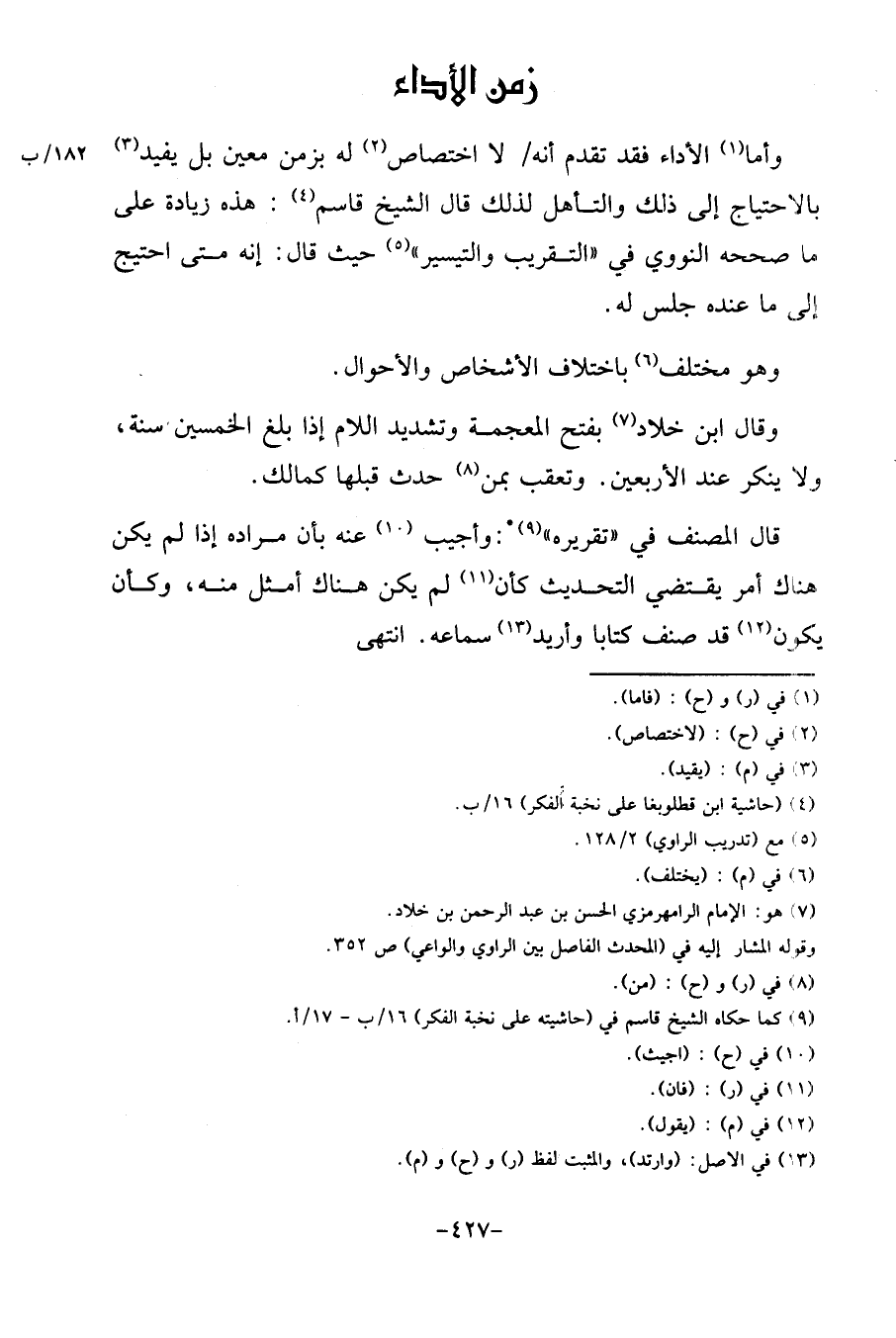 وَأما الْأَدَاء فقد تقدم أَنه / لَا اخْتِصَاص لَهُ بِزَمن معِين بل يُفِيد بالاحتياج إِلَى ذَلِك والتأهل لذَلِك قَالَ الشَّيْخ قَاسم: هَذِه زِيَادَة على مَا صَححهُ النَّوَوِيّ فِي " التَّقْرِيب والتيسير " حَيْثُ قَالَ: إِنَّه مَتى احْتِيجَ إِلَى مَا عِنْده جلس لَهُ.