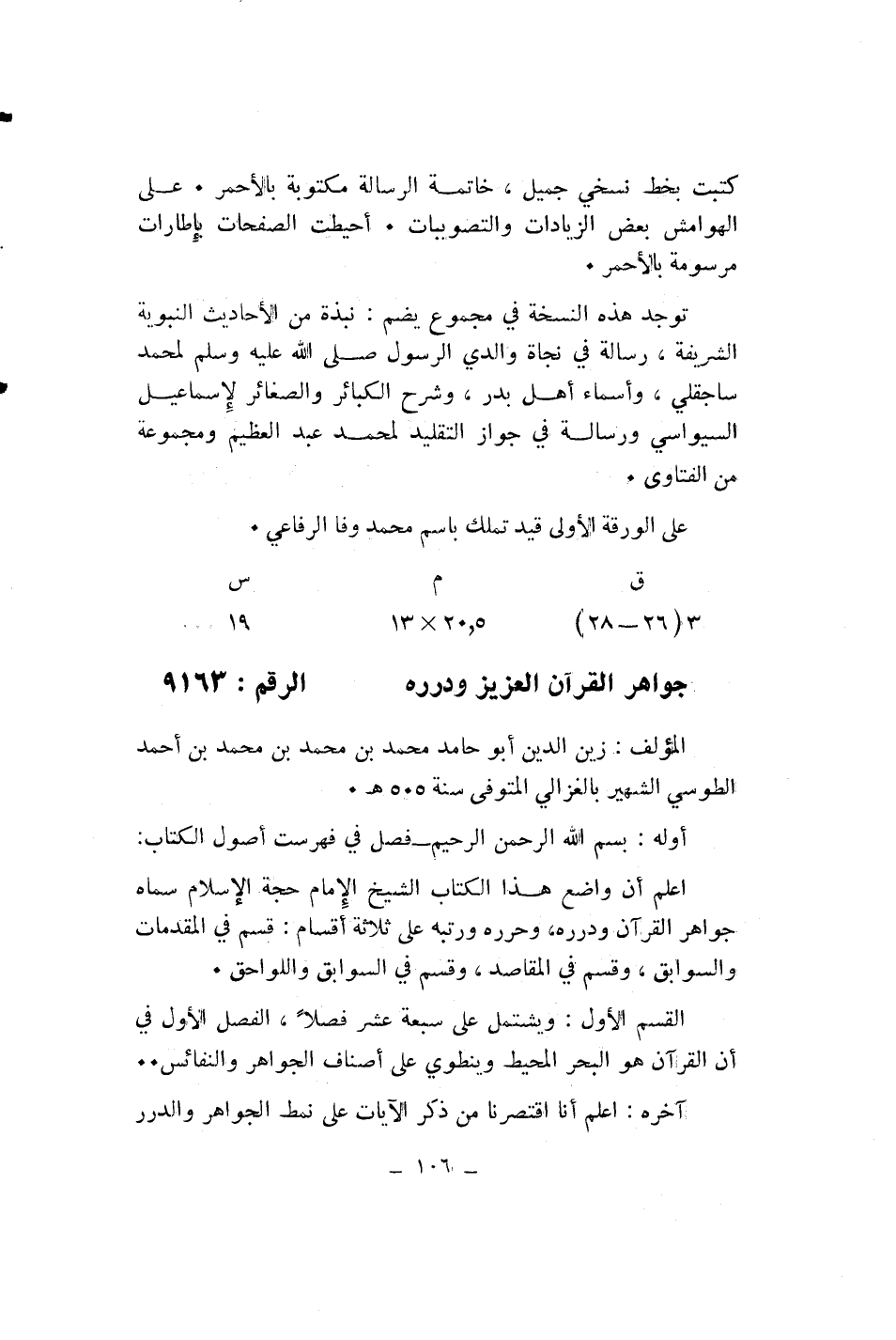 جواهر القرآن العزيز ودرره* الرقم: 9163