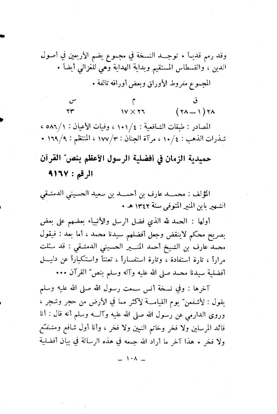 حميدية الزمان في أفضلية الرسول الأعظم بنصّ القرآن* الرقم: 9167