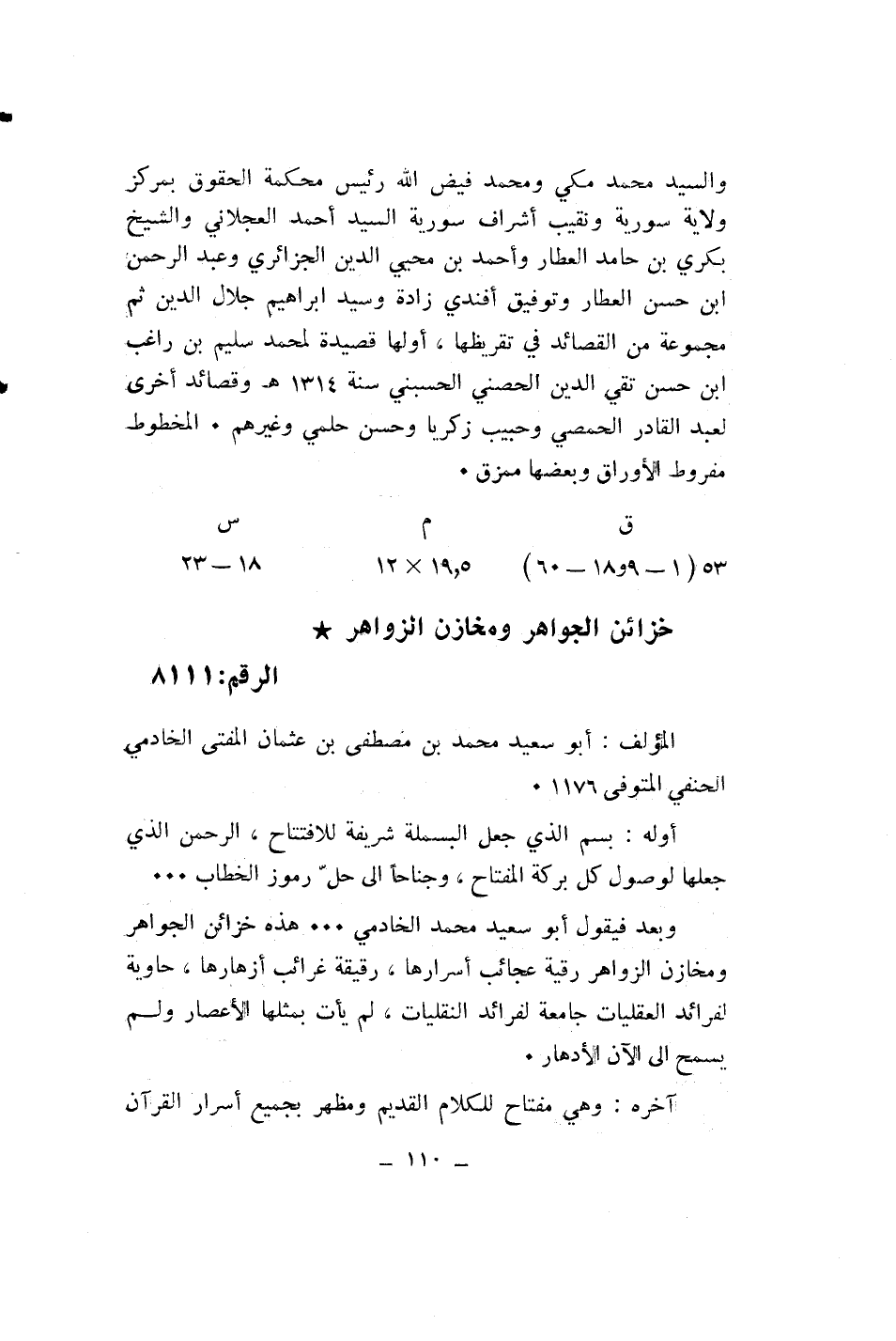 خزائن الجواهر ومخازن الزواهر* الرقم: 8111