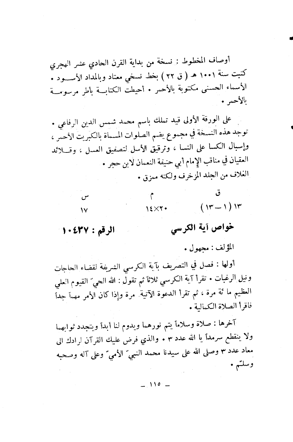 آخرها: صلاة وسلاما يتم نورهما ويدوم لنا أبدا ويتجدد ثوابهما ولا ينقطع سرمدا يا الله عدد 3. والذي فرض عليك القرآن لرادك الى معاد عدد 3 وصلى الله على سيدنا محمد النبيّ الأميّ وعلى آله وصحبه وسلّم.