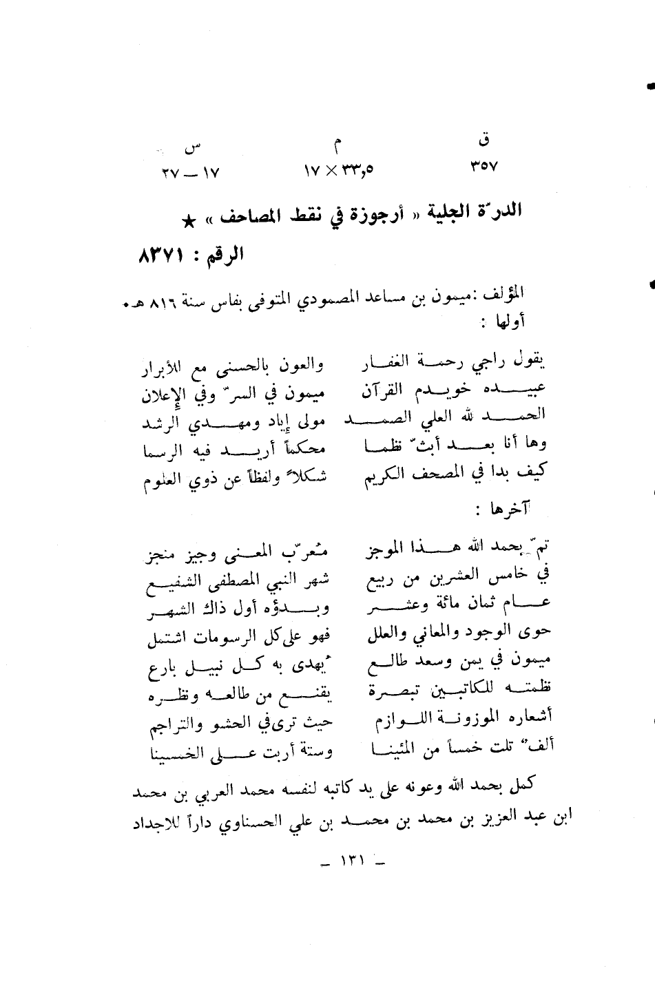 (ق 357/ م 5، 33* 17/ س 17 - 27)