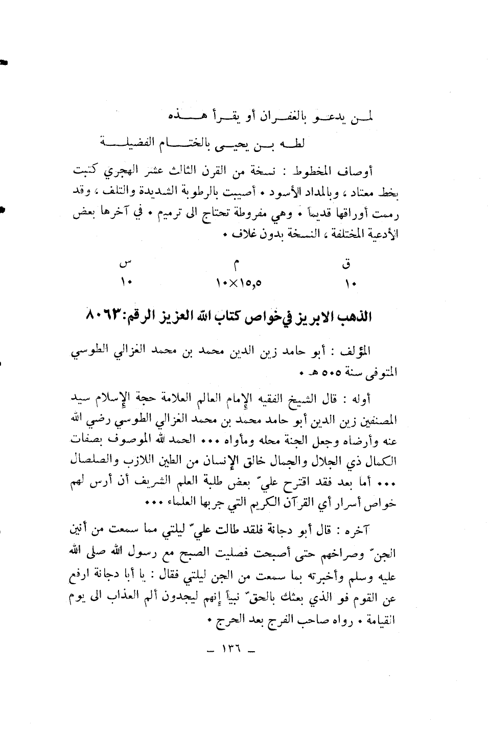 الذهب الإبريز في خواص كتاب الله العزيز* الرقم: 8063
