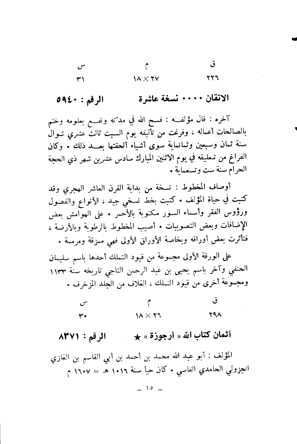 الاتقان .... نسخة عاشرة* الرقم: 5940