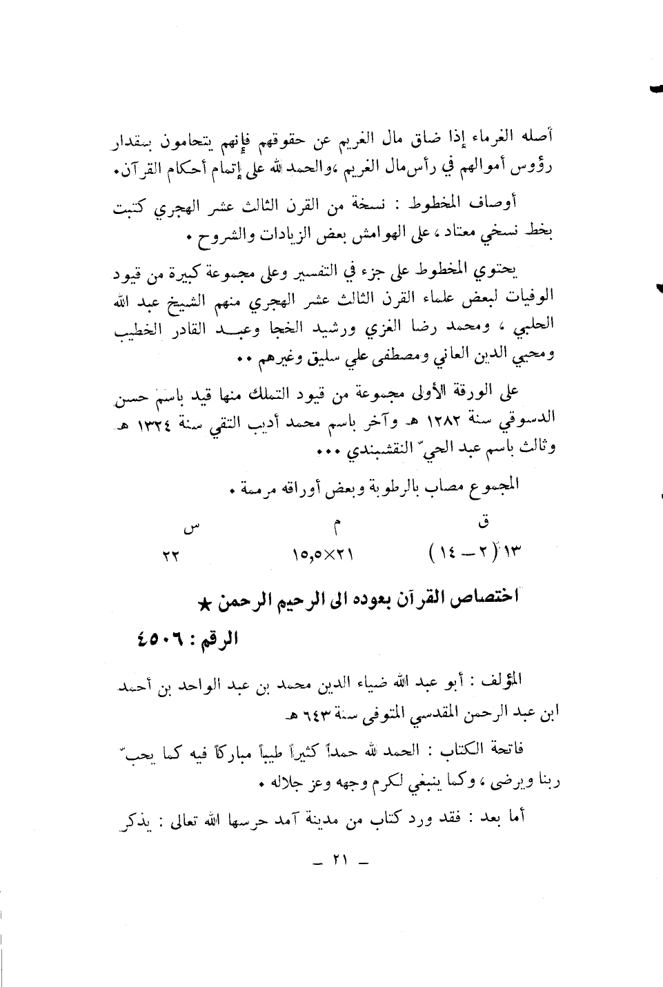 (ق 13 (2 - 14) / م 21* 5، 15/ س 22)