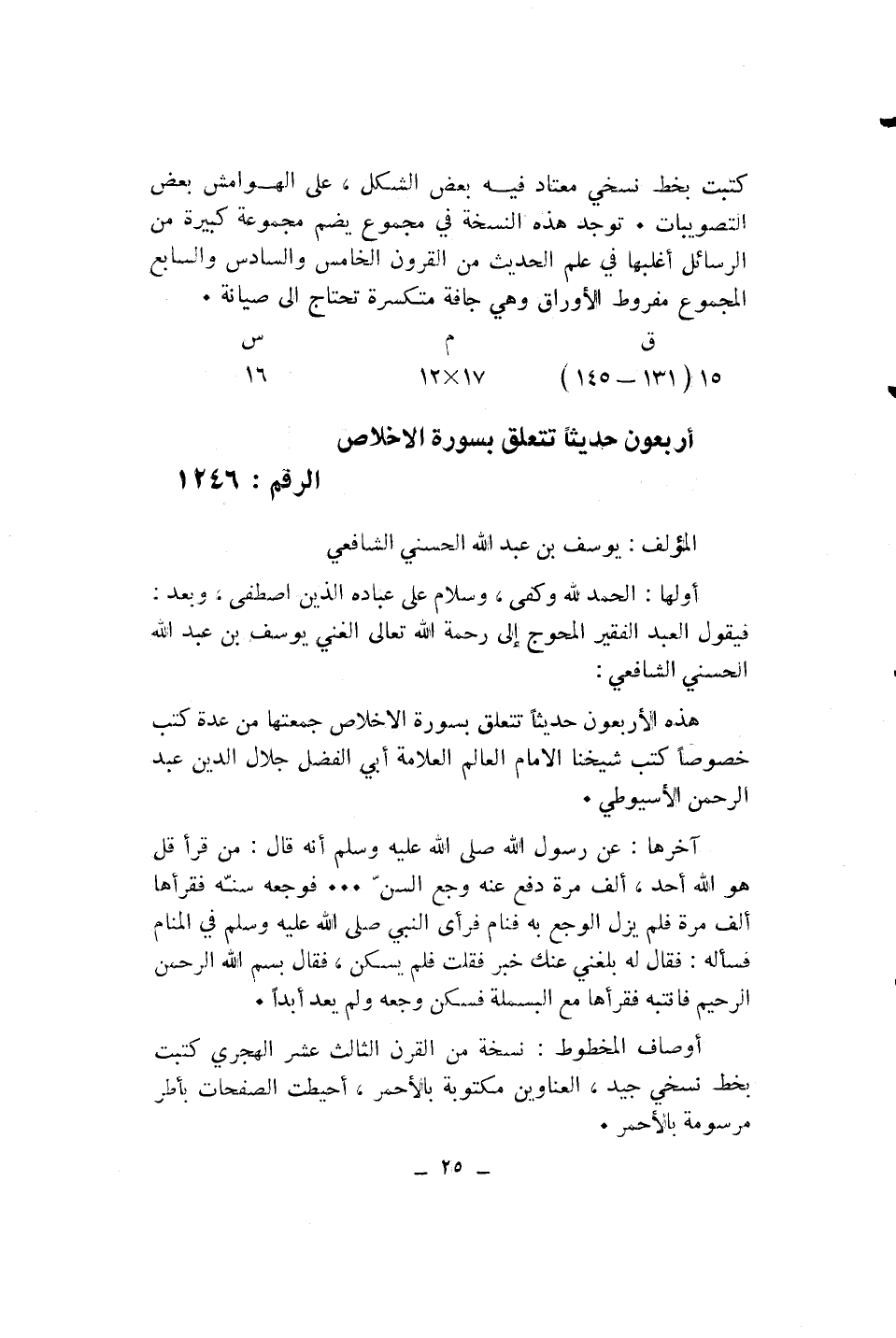 أربعون حديثا تتعلق بسورة الاخلاص الرقم: 1246