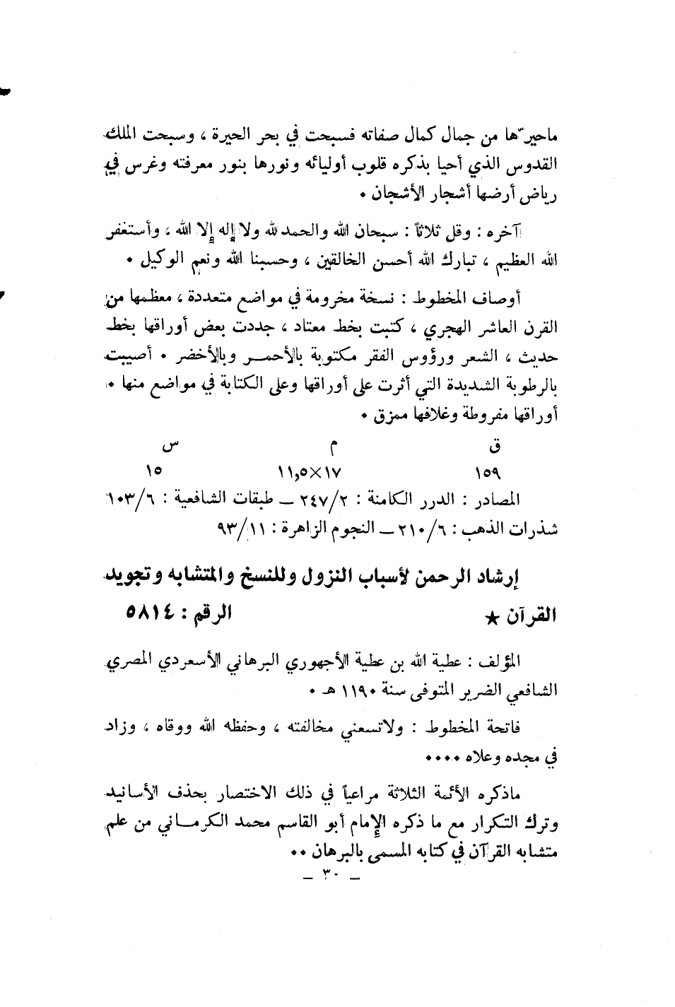 إرشاد الرحمن لأسباب النزول وللنسخ والمتشابه وتجويد القرآن* الرقم: 5814