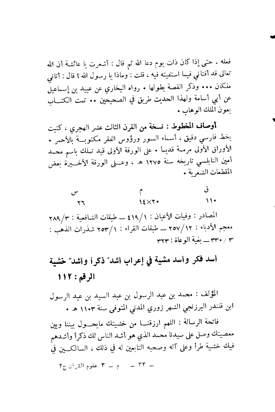 المؤلف: محمد بن عبد الرسول بن عبد السيد بن عبد الرسول ابن قلندر البرزنجي الشهر زوري المدني المتوفى سنة 1103 هـ.