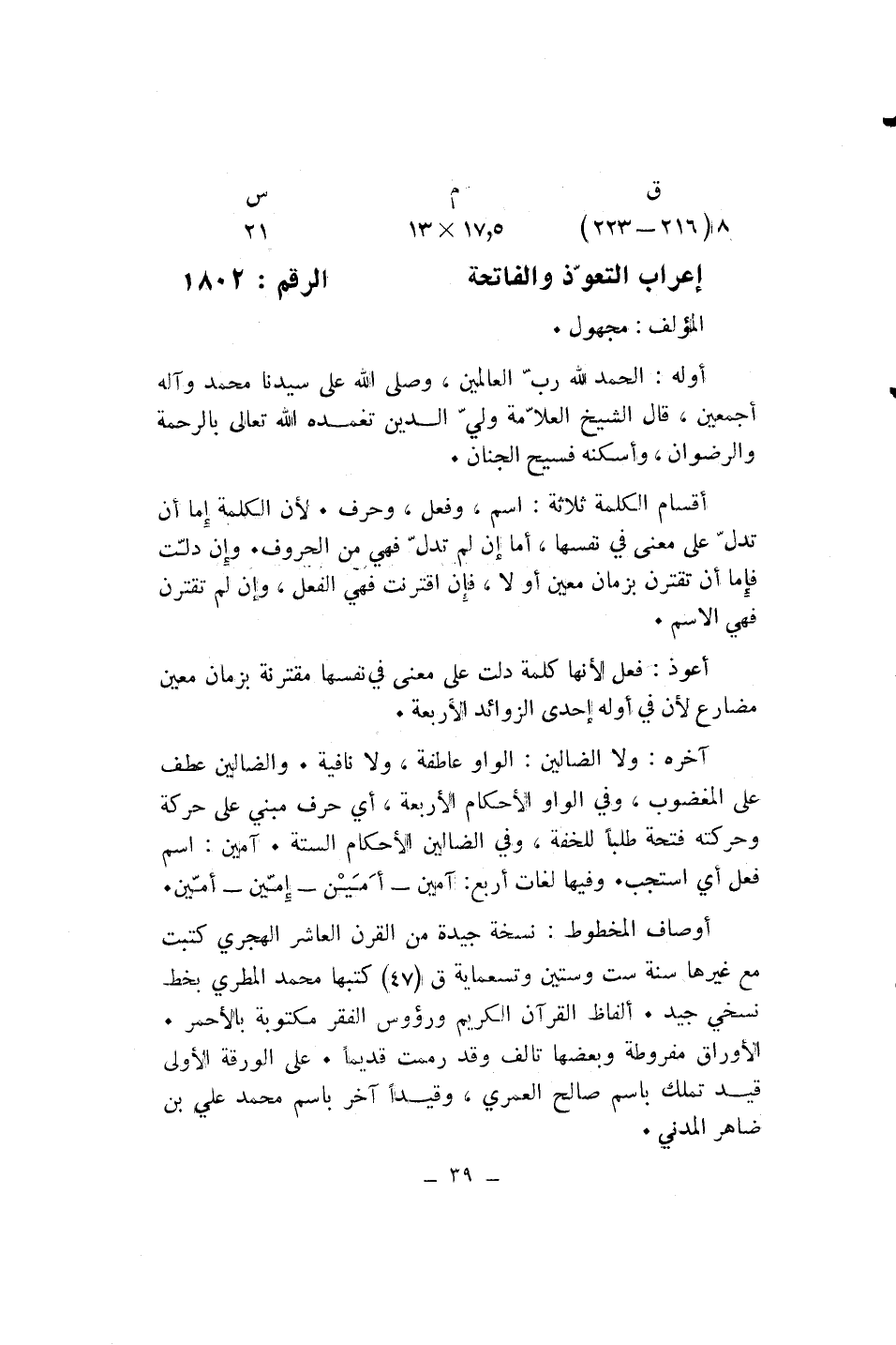 إعراب التعوّذ والفاتحة* الرقم: 1802