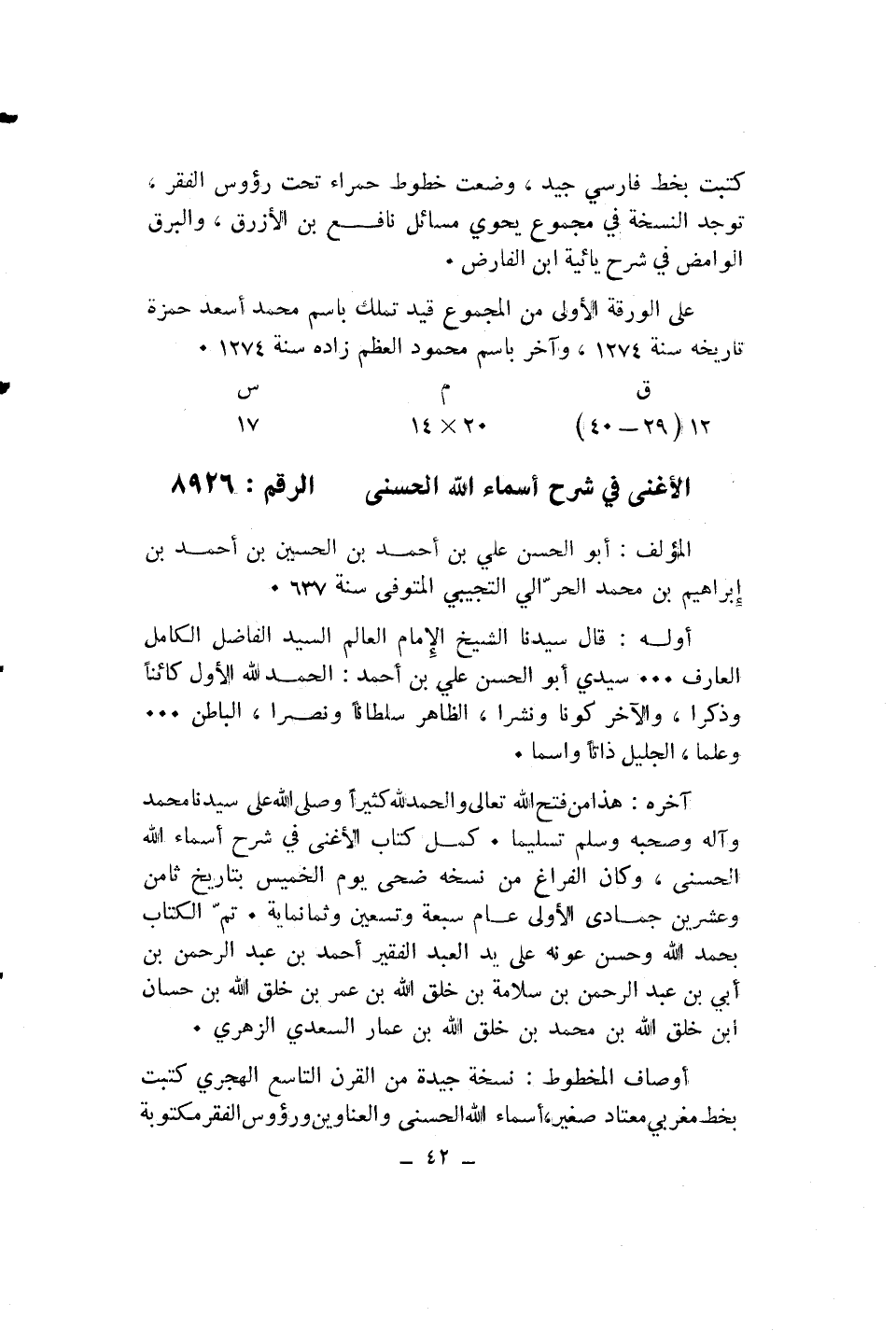الأغنى في شرح أسماء الله الحسنى* الرقم: 8926