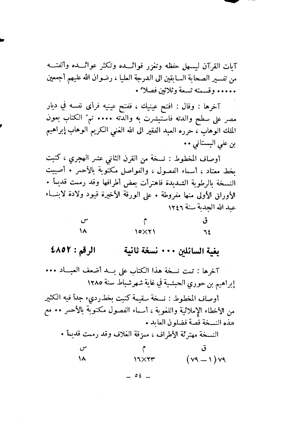 بغية السائلين ... نسخة ثانية* الرقم: 4852