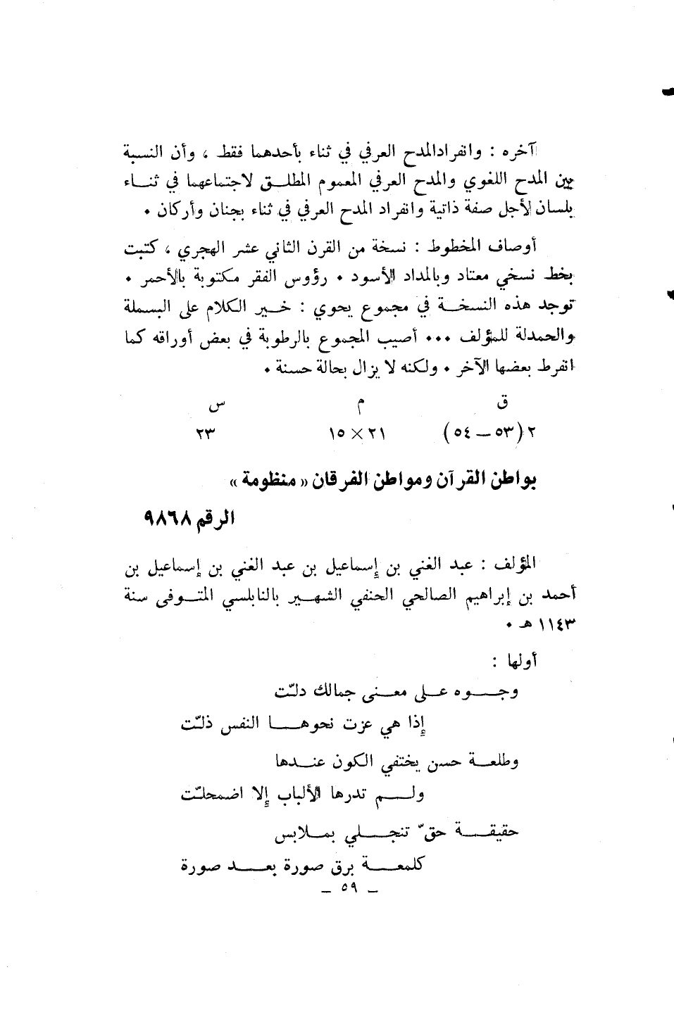 بواطن القرآن ومواطن الفرقان «منظومة» * الرقم 9868