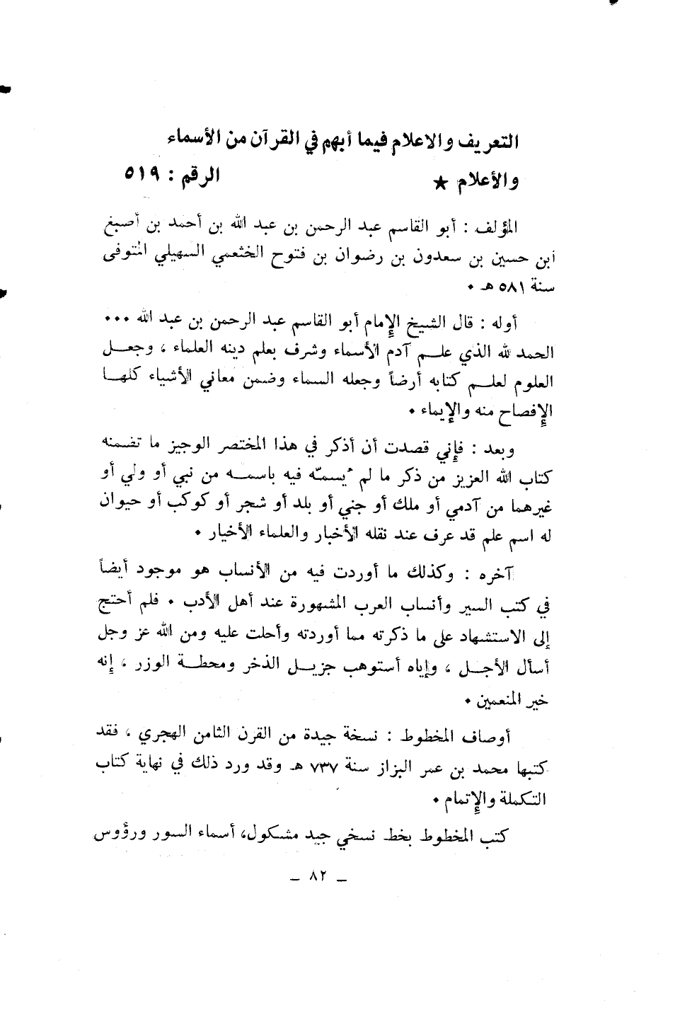 التعريف والاعلام فيما أبهم في القرآن من الأسماء والأعلام* الرقم: 519