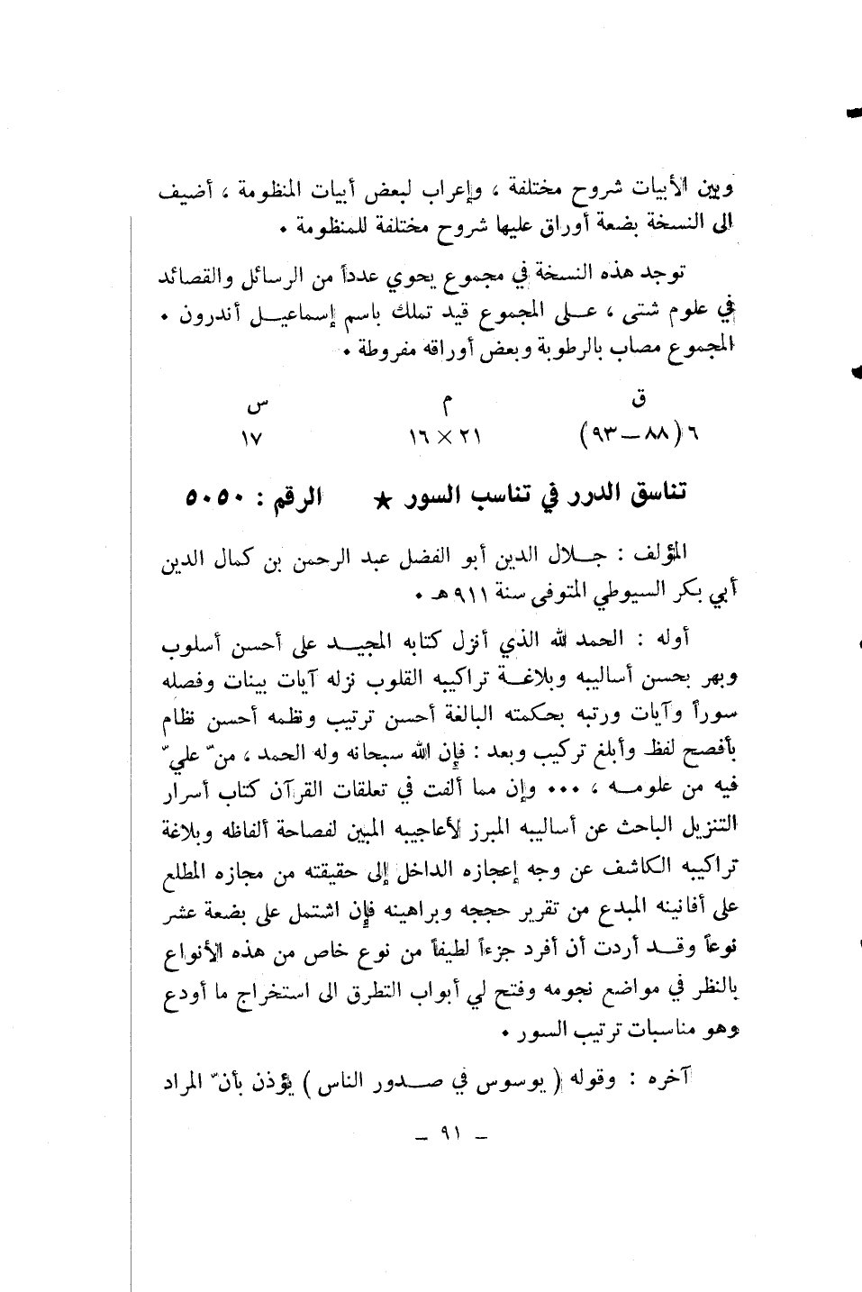 تناسق الدرر في تناسب السور* الرقم: 5050