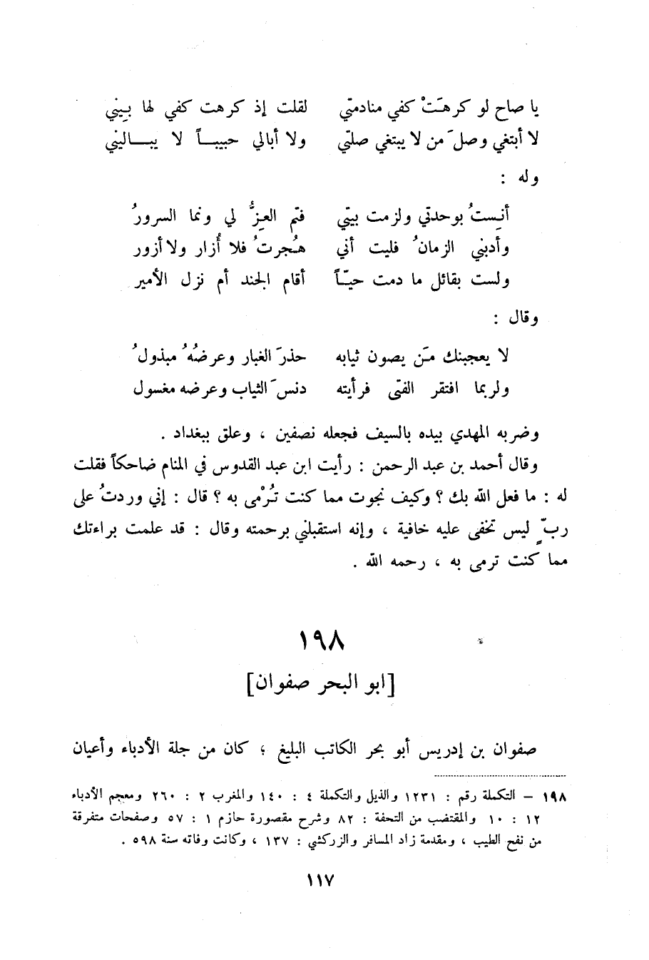 ولربما افتقر الفتى فرأيته ... دنس الثياب وعرضه مغسول وضربه المهدي بيده بالسيف فجعله نصفين، وعلق ببغداد.