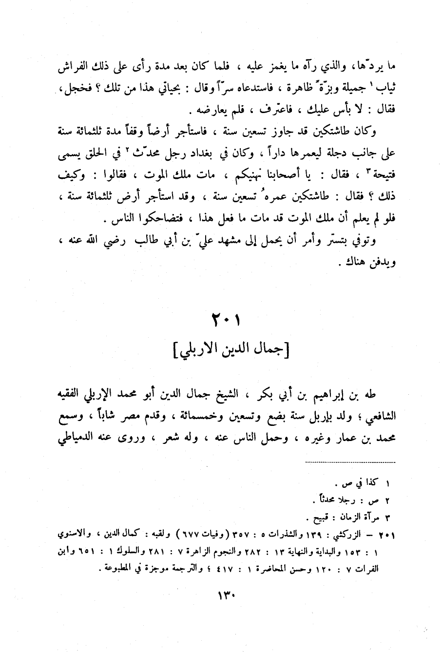 (4) الزركشي: 139 والشذرات 5: 357 (وفيات 677) ولقبه: كمال الدين، والأسنوي 1: 153 والبداية والنهاية 13: 282 والنجوم الزاهرة 7: 281 والسلوك 1: 651 وابن الفرات 7: 120 وحسن المحاضرة 1: 417؛ والترجمة موجزة في المطبوعة.